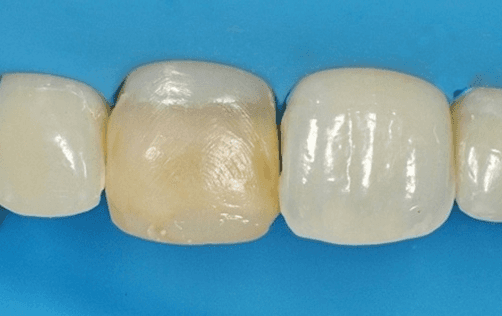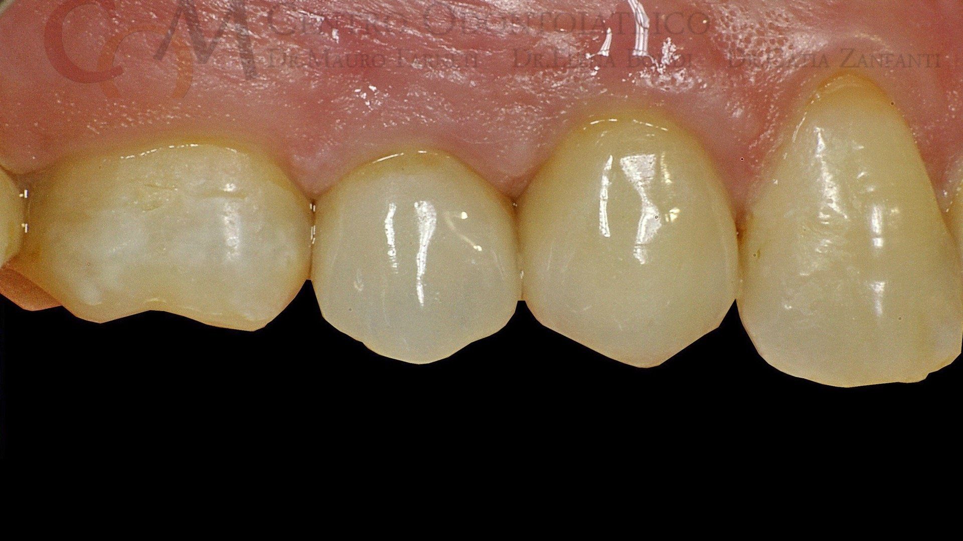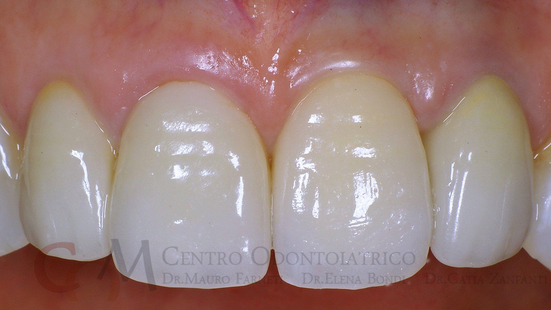 Il dente incisivo centrale presentava un vecchio restauro, molto esteso, che la paziente temeva di rimuovere per il rischio di doversi sottoporre a terapie lunghe e costose. In realtà il dente è stato curato in una sola seduta, mediante un trattamento di restaurativa diretta, sulla base di un progetto elaborato con la paziente. Il dente ha anche mantenuto inalterata la propria vitalità pulpare!