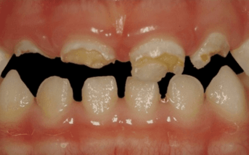 Spesso i dentini da latte cominciano a cariarsi già appena erompono nel cavo orale in quanto sono frequentemente a contatto con zuccheri semplici, come quelli veicolati dal biberon. Particolarmente aggressivi per i denti da latte risultano: tutte le tisane/infusi in commercio in bustine già pronte e pre-zuccherate; il latte zuccherato con qualsivoglia tipologia, incluso il miele; il latte e biscotti, specie nell’uso notturno; l’utilizzo quotidiano, spesso al posto dell’acqua, di succhi di frutta o bevande acide, per citare alcuni fra i più comuni errori commessi nel tentativo di dare una alimentazione completa al bambino, che spesso si traduce nella comparsa di una patologia chiamata