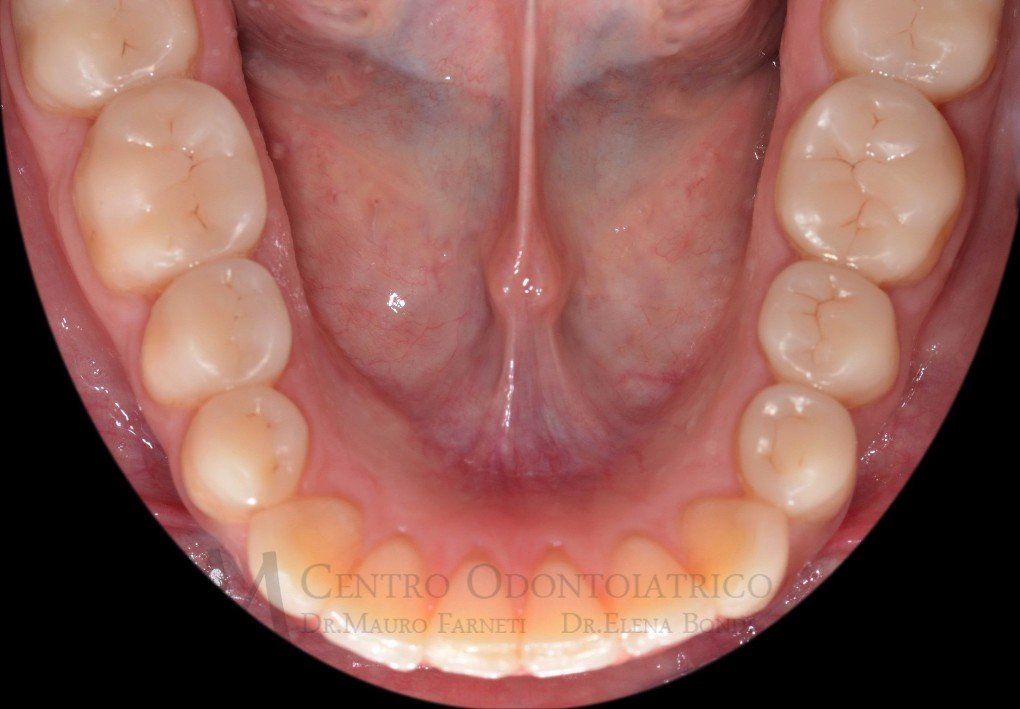 Il dente incisivo centrale presentava un vecchio restauro, molto esteso, che la paziente temeva di rimuovere per il rischio di doversi sottoporre a terapie lunghe e costose. In realtà il dente è stato curato in una sola seduta, mediante un trattamento di restaurativa diretta, sulla base di un progetto elaborato con la paziente. Il dente ha anche mantenuto inalterata la propria vitalità pulpare!